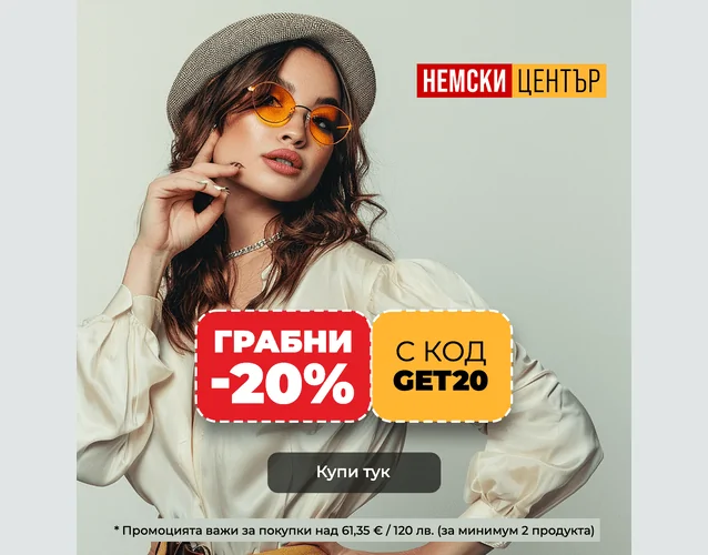 Грабни -20% отстъпка! с код GET20 * Процията важи за покупки над 120/61,35 евро лв. ( за минимум 2 продукта)
